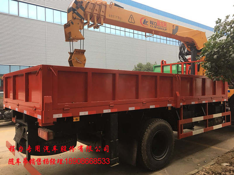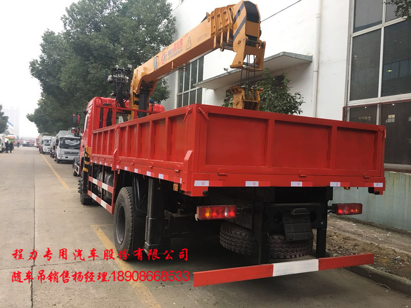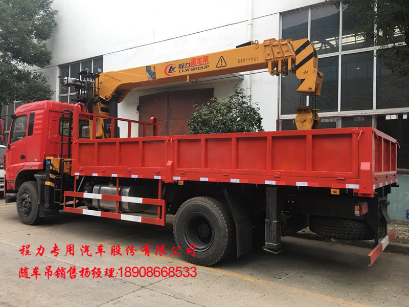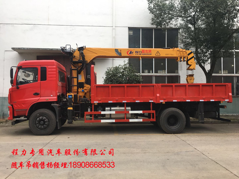 东风随车吊,专底升级款随车吊,D3L方鼎豪华悬浮驾驶室,国五玉柴6缸180马力发动机,陕齿小八档带高低速,10.0020钢丝胎,300mm三层(6+8+8)通体大梁(第三层从驾驶室后悬直通到尾部),前桥德纳加强桥5.5吨,后桥10吨,单腔液压后支腿,气囊座椅,天龙内饰通道式内部空间(标准3人座椅),遥控锁,铝合金油箱+铝合金储气罐,带ABS,下防护,原厂法士特取力器,电动门窗,断气刹,排气制动,可上装5吨,6.3吨,8吨,10吨直折臂吊机,不超重,不超宽。