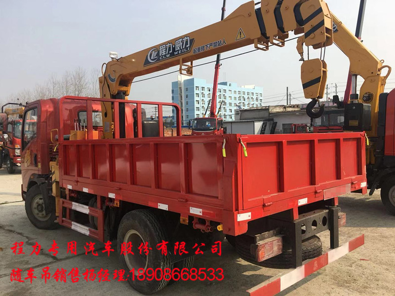 蓝牌随车吊,重汽豪曼随车吊,2080单排宽体驾驶室带天窗,国五云内YN38CRE1(130马力)发动机,8档变速箱带高低速(变速器型号:DC6J48T),主减速器速比(驱动桥速比):4.875,8吨后桥,220mm双层大梁,8.25R16钢丝胎,真皮座椅,豪活重卡式液晶显示仪表,加宽刹车蹄片,远程油门,原厂取力器,方向助力,断气刹,排气制动,ABS,单腔液压后支腿,货厢尺寸:3450*2300*600,可上装2~5吨各品牌直折臂吊机,不超高,不超宽。